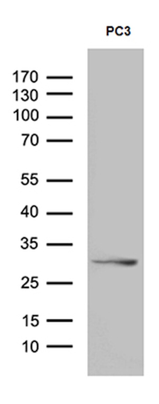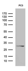 - Western blot analysis of extracts (35 µg) from PC3 cell line by using anti-C1orf111 monoclonal antibody. (1:500)