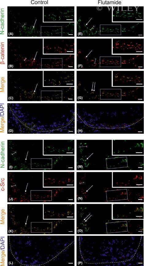 Flutamide alters the distribution of c-Src and affects the N-cadherin-β-catenin complex in the seminiferous epithelium of adult rat.