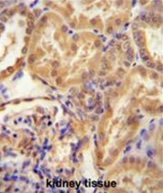 - C1orf110 antibody (C-term) (Cat. #AP50527PU-N) immunohistochemistry analysis in formalin fixed and paraffin embedded human kidney tissue followed by peroxidase conjugation of the secondary antibody and DAB staining. This data demonstrates the use of the C1orf110 antibody (C-term) for immunohistochemistry. Clinical relevance has not been evaluated.