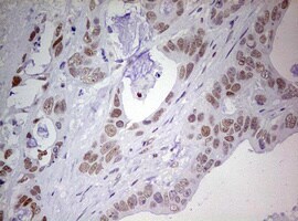 - Immunohistochemical staining of paraffin-embedded Adenocarcinoma of Human colon tissue using anti-PRRX1 mouse monoclonal antibody. (Heat-induced epitope retrieval by 10mM citric buffer, pH6.0, 120°C for 3min, TA803112)