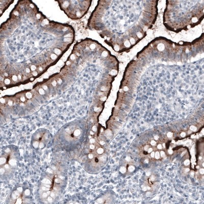 - Immunohistochemistry-Paraffin: ACE-2 Antibody (CL4035) [NBP2-59037] - Staining of human duodenum shows strong immunoreactivity in apical membranes of glandular cells.