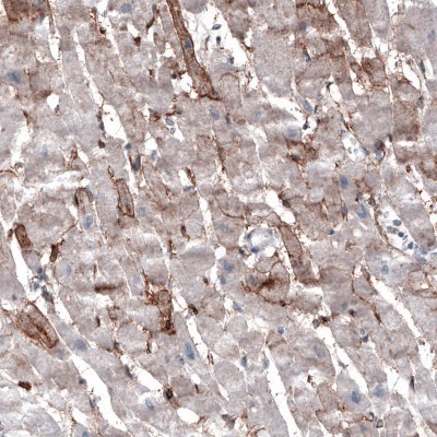 - Immunohistochemistry-Paraffin: ACE-2 Antibody (CL4035) [NBP2-59037] - Staining of human heart muscle shows moderate membranous positivity in cardiomyocytes.