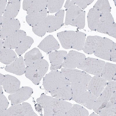 - Immunohistochemistry-Paraffin: ACE-2 Antibody (CL4035) [NBP2-59037] - Staining of human skeletal muscle shows no positivity as expected (negative control).