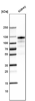 - Western Blot: ACE-2 Antibody (CL4035) [NBP2-59037] - Analysis in human kidney tissue.