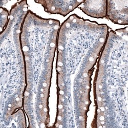 - Immunohistochemistry-Paraffin: ACE-2 Antibody (CL4035) [NBP2-59037] - Staining of human small intestine shows strong positivity in apical membranes of glandular cells.