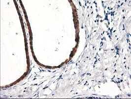 - Immunohistochemical staining of paraffin-embedded human breast tissue within the normal limits using anti-RGS16 mouse monoclonal antibody. (Heat-induced epitope retrieval by 10mM citric buffer, pH6.0, 100°C for 10min, TA504033)