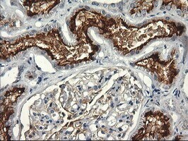 - Immunohistochemical staining of paraffin-embedded human Kidney tissue within the normal limits using anti-RGS16 mouse monoclonal antibody. (Heat-induced epitope retrieval by 10mM citric buffer, pH6.0, 100°C for 10min, TA504033)