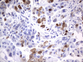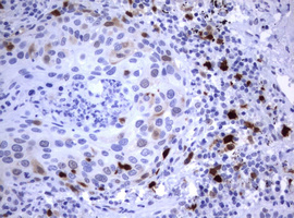 - IHC of paraffin-embedded Human lymphoma tissue using anti-TYMS mouse monoclonal antibody.