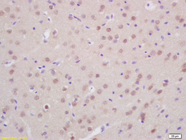 - Formalin-fixed and paraffin embedded rat brain labeled with Anti-Prox1 Polyclonal Antibody, Unconjugated (bs-2774R) at 1:200 followed by conjugation to the secondary antibody and DAB staining