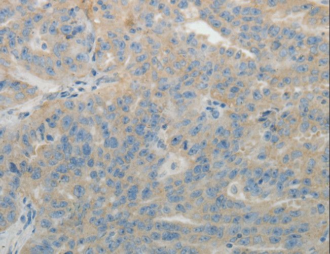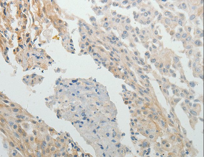 - Immunohistochemistry of paraffin-embedded Human cervical cancer using SPATA17 Polyclonal Antibody at dilution of 1:15.