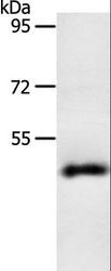 - Western blot analysis of Human liver cancer tissue, using SPATA17 Polyclonal Antibody at dilution of 1:200.