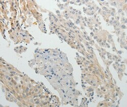 - Immunohistochemical analysis of SPATA17 in paraffin embedded Human cervical cancer tissue using SPATA17 Polyclonal Antibody (Product # PA5-50273) at a 1:15 dilution.