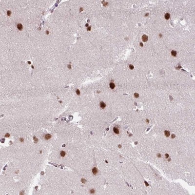 - Immunohistochemistry: ZNF672 Antibody [NBP2-47563] - Staining of human cerebral cortex shows strong nuclear positivity in neuronal cells.