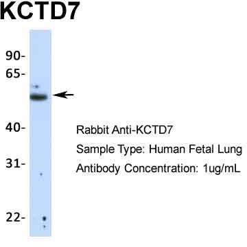 - Host: Rabbit; Target Name: KCTD7; Sample Tissue: Human Fetal Lung; Antibody Dilution: 1.0 ug/ml