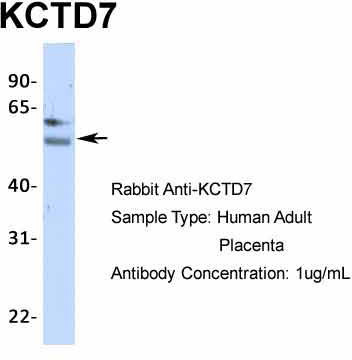 - Host: Rabbit; Target Name: KCTD7; Sample Tissue: Human Adult Placenta; Antibody Dilution: 1.0 ug/ml
