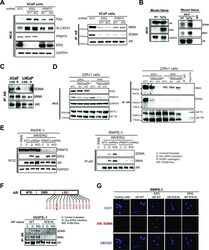 - Figure 3. PRMT5 methylates AR on arginine 761. (A) ( A ) Left panel: western blots of noted proteins from VCaP whole cell extracts (WCE) after ERG or PRMT5 knockdown. Right panel: Western blot of AR immunoprecipitation (IP) from VCaP. SDMA: symmetric di-methyl arginine; MMA: mono-methyl arginine. ( B ) Left panel: Western blot analysis of noted proteins from homozygous TMPRSS2:ERG transgenic (Tg/Tg) and WT mouse tissues. Right panel: AR or IgG IP from mouse tissues followed by western blot analysis of MMA, SDMA and total AR levels. ( C ) Western blot of AR immunoprecipitation (IP) from VCaP and LNCaP cells grown in charcoal-stripped serum (CSS) and stimulated with 10nM R1881. SDMA: symmetric di-methyl arginine; MMA: mono-methyla arginine. ( D ) Left panel: western blot of noted proteins from 22Rv1 parental (PAR) or ERG-expressing (ERG) WCEs. FL: full-length; TR: truncated (lacking ligand binding domain, LBD). Right panel: Western blot of AR IP from 22Rv1. ( E ) Left panel: RWPE-1 parental (PAR) and AR and ERG-expressing (AR/ERG) cells targeted by PRMT5 knockdown (PRMT5 shRNA) or NTC shRNA were left either untreated ( C ) or treated with 100ng/ml doxycycline ( D ) in the absence or presence of 1nM R1881 (R) for 24 hr. Western blot analysis shows expression levels of PRMT5, ERG, AR and GAPDH from input samples (WCE). Right panel: Lysates were then used for AR immunoprecipitation (AR IP) followed by western blot analysis using antibodies against MMA, SDMA or total AR levels. ( F