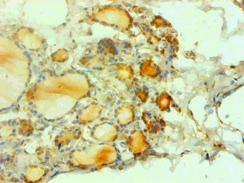 - Immunohistochemical of paraffin-embedded human thyroid tissues using CALCA Monoclonal Antibody at dilution of 1:200