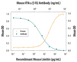 - Limitin Inhibition of EMCV-induced Cytopathy and Neutralization by Mouse IFN-alpha/beta R2 Antibody. Recombinant Mouse Limitin (Catalog # 1535-LM) reduces the Encephalomyocarditis Virus (EMCV)-induced cytopathy in the L-929 mouse fibroblast cell line in a dose-dependent manner (orange line). Inhibition of EMCV activity elicited by Recombinant Mouse Limitin (30 pg/mL) is neutralized (green line) by increasing concentrations of Goat Anti-Mouse IFN-alpha/beta R2 Antigen Affinity-purified Polyclonal Antibody (Catalog # AF1083). The ND50 is typically 2-10 µg/mL.