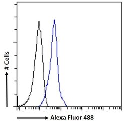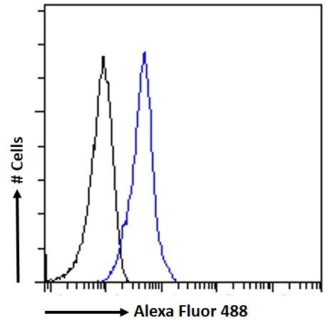 - Flow Cytometry analysis of IFNAR2 in K562 cells (blue line) using IFNAR2 Polyclonal Antibody (Product # PA5-142341). Cells were fixed with paraformaldehyde, permeabilized with 0.5% Triton, and incubated with the primary antibody for 1hr (10 µg/mL) followed by Alexa Fluor 488 secondary antibody (1 µg/mL). IgG control: Unimmunized goat IgG (black line) followed by Alexa Fluor 488 secondary antibody.