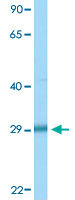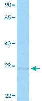 - Western Blot analysis of HeLa cell lysate with EGFL8 polyclonal antibody (Cat # PAB30043) at 1 ug/mL working concentration.