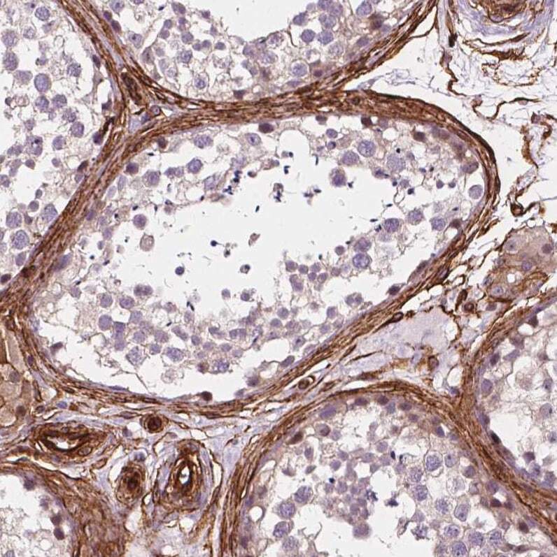 - Immunohistochemical analysis of EGFL8 in human testis using EGFL8 Polyclonal Antibody (Product # PA5-63929) shows strong membranous positivity in peritubular myoid cells.