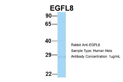 - Western Blot: EGFL8 Antibody [NBP1-57964] - Sample Type: Hela Antibody Dilution: 1.0 ug/ml EGFL8 is supported by BioGPS gene expression data to be expressed in HeLa