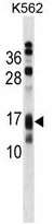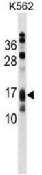 - AP3S2 Antibody (N-term) (Cat. #AP50204PU-N) western blot analysis in K562 cell line lysates (35µg/lane).This demonstrates the AP3S2 antibody detected the AP3S2 protein (arrow).