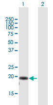 - Western Blot analysis of AP3S2 expression in transfected 293T cell line (H00010239-T01) by AP3S2 MaxPab polyclonal antibody.Lane 1: AP3S2 transfected lysate(21.23 KDa).Lane 2: Non-transfected lysate.