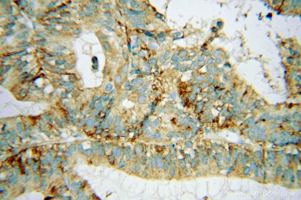 - Immunohistochemical analysis of paraffin-embedded human colon cancer tissue slide using (Product # 15319-1-AP) (AP3S2 antibody) at dilution of 1:200 (under 10x lens). Heat mediated antigen retrieval with Tris-EDTA buffer (pH 9.0).