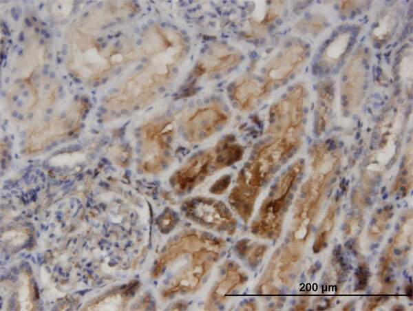 - Immunoperoxidase of monoclonal antibody to PACSIN2 on formalin-fixed paraffin-embedded human kidney. [antibody concentration 3 ug/ml]