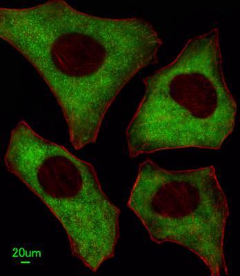 - Immunocytochemistry/Immunofluorescence: PACSIN2 Antibody [NBP2-29921] - Immunofluorescent analysis of Hela cells, using (C-term). NBP2-29921 was diluted at 1:100 dilution. Alexa Fluor 488-conjugated goat anti-rabbit lgG at.