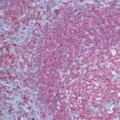 - Formalin-fixed, paraffin-embedded human tonsil stained with CD20 antibody using alkaline phosphatase-conjugate and fast red chromogen. Note cell membrane staining of B lymphocytes.