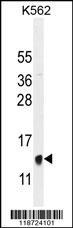 - HBB Antibody (C-term) (Cat. #AP11557b) western blot analysis in K562 cell line lysates (35ug/lane).This demonstrates the HBB antibody detected the HBB protein (arrow).