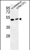 - Western blot analysis of PISD Antibody (Center) (GTX80997) in mouse cerebellum tissue and mouse NIH-3T3 cell line lysates (35ug/lane). PISD (arrow) was detected using the purified Pab.