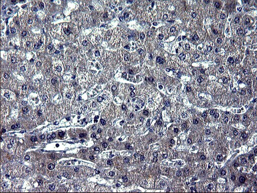 - Immunohistochemical staining of paraffin-embedded human liver tissue within the normal limits using anti-TXNDC5 mouse monoclonal antibody. (Heat-induced epitope retrieval by 1 mM EDTA in 10mM Tris, pH8.5, 120°C for 3min, TA507259)