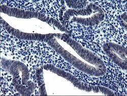 - Immunohistochemical staining of paraffin-embedded human endometrium tissue within the normal limits using anti-TXNDC5 mouse monoclonal antibody. (Heat-induced epitope retrieval by 1 mM EDTA in 10mM Tris, pH8.5, 120°C for 3min, TA507259)