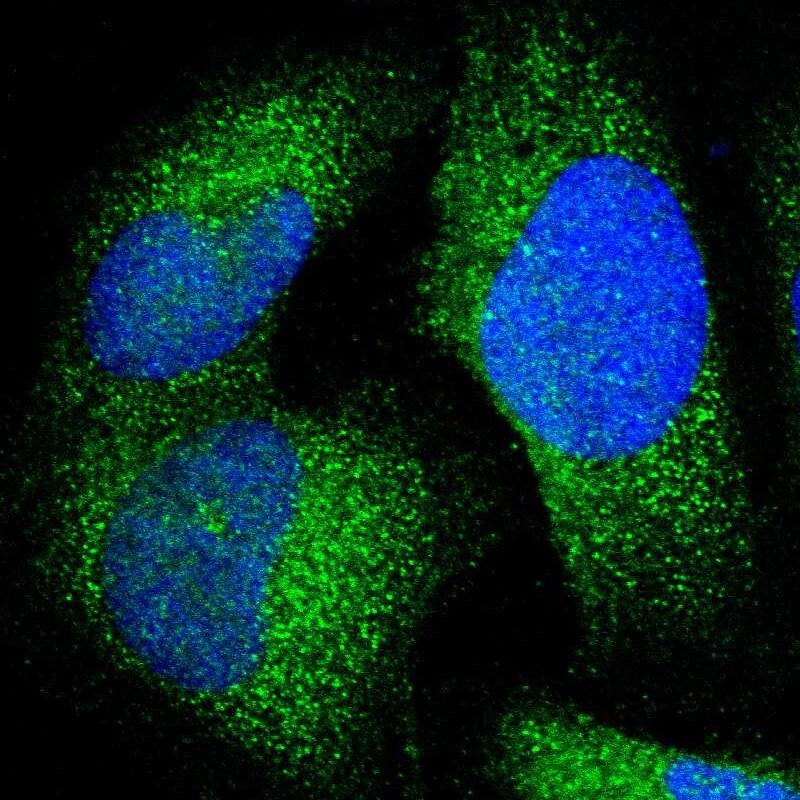 - Immunofluorescent staining of human cell line U-2 OS shows localization to cytosol.