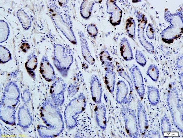 - Formalin-fixed and paraffin embedded human gastric parietal cells labeled with Anti-Gastrin Polyclonal Antibody, Unconjugated (bs-1189R) followed by conjugation to the secondary antibody and DAB staining