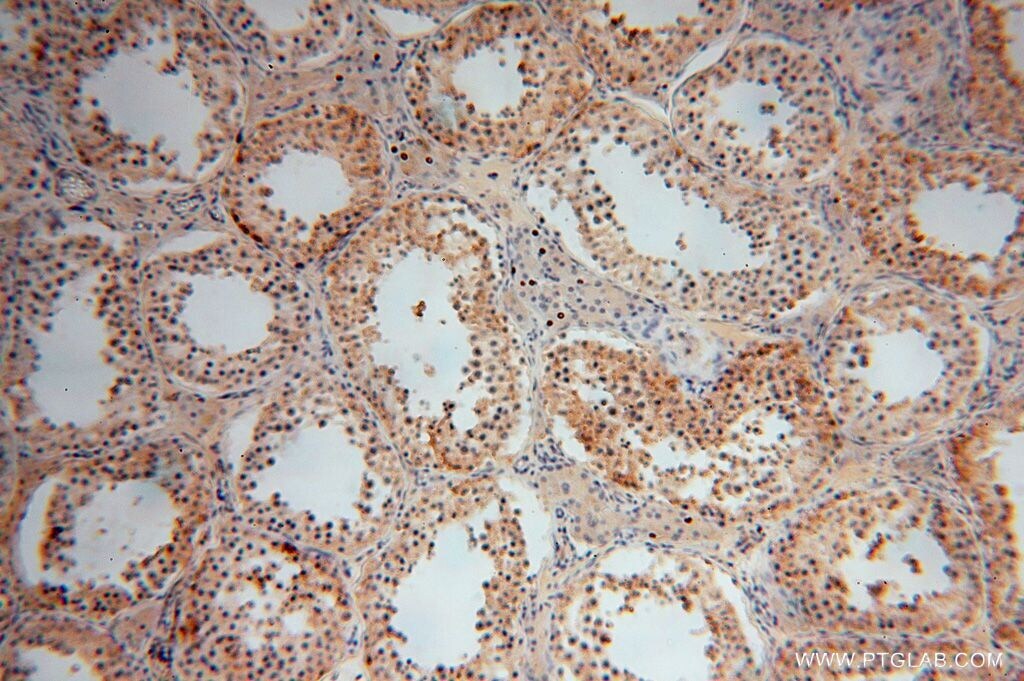 - Immunohistochemistry of paraffin-embedded human testis using 16352-1-AP (PSG11 antibody) at dilution of 1:100 (under 10x lens).