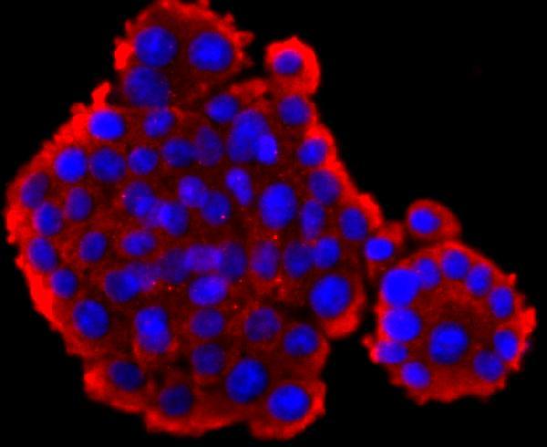 - Immunocytochemistry staining of GCG using Anti-GLP1 GCG Antibody (A00678). ICC staining GLP1 in PC-12 cells (red). The nuclear counter stain is DAPI (blue). Cells were fixed in paraformaldehyde
