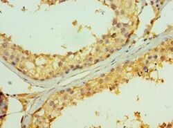 - Immunohistochemistry of paraffin-embedded human testicle using antibody at 1:100 dilution.