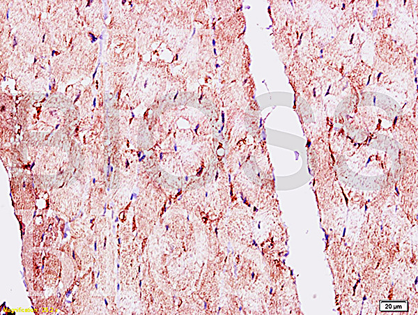 - Formalin-fixed and paraffin embedded rat myocardium labeled with Anti-MuRF1/Trim63 Polyclonal Antibody, Unconjugated (bs-0649R) at 1:200 followed by conjugation to the secondary antibody and DAB staining.