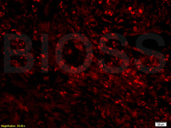 - Formalin-fixed and rat colitis tissue labeled with Anti-CD68 Polyclonal Antibody, Unconjugated (bs-0649R) at 1:200 followed by conjugation to the secondary antibody, Goat Anti-Rabbit IgG, Cy5 conjugated(bs-0295G-Cy5),