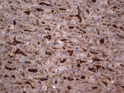 - IHC of paraffin-embedded Human liver tissue using anti-CD68 mouse monoclonal antibody. (heat-induced epitope retrieval by 1 mM EDTA in 10mM Tris, pH8.5, 120°C for 3min).