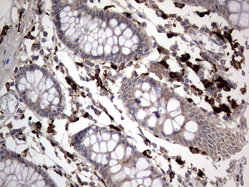 - IHC of paraffin-embedded Human colon tissue using anti-CD68 mouse monoclonal antibody. (heat-induced epitope retrieval by 1 mM EDTA in 10mM Tris, pH8.5, 120°C for 3min).