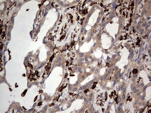 - IHC of paraffin-embedded Carcinoma of Human lung tissue using anti-CD68 mouse monoclonal antibody. (heat-induced epitope retrieval by 1 mM EDTA in 10mM Tris, pH8.5, 120°C for 3min).