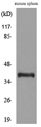 - Western blot analysis of lysate from mouse spleen cells, using CD68 Antibody.