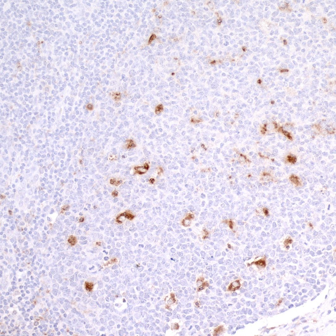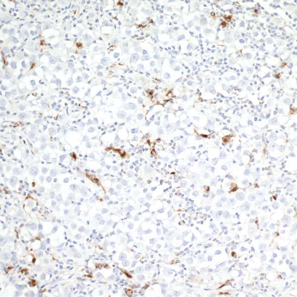 - Detection of human CD68 in FFPE seminoma by IHC. Antibody: Mouse monoclonal anti-CD68 [KP-1] (Product # A500-018A lot 2). Secondary: HRP-conjugated goat anti-mouse IgG (A90-116P). Substrate: DAB. Counterstain: Hematoxylin (blue).