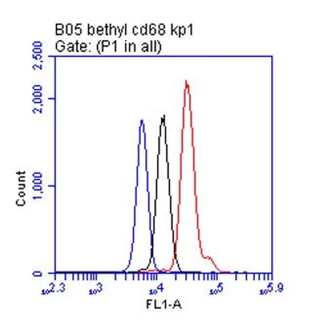 - Analysis of CD68 in human whole blood by flow cytometry using mouse monoclonal anti-CD68 [KP-1] (A500-018A). Secondary: DyLight® 488-conjugated goat anti-mouse IgG (A90-116D2).