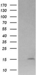 - HEK293T cells were transfected with the pCMV6-ENTRY control (Left lane) or pCMV6-ENTRY LYZ (RC200730, Right lane) cDNA for 48 hrs and lysed. Equivalent amounts of cell lysates (5 µg per lane) were separated by SDS-PAGE and immunoblotted with anti-LYZ. Positive lysates LY400091 (100 µg) and LC400091 (20 µg) can be purchased separately from OriGene.